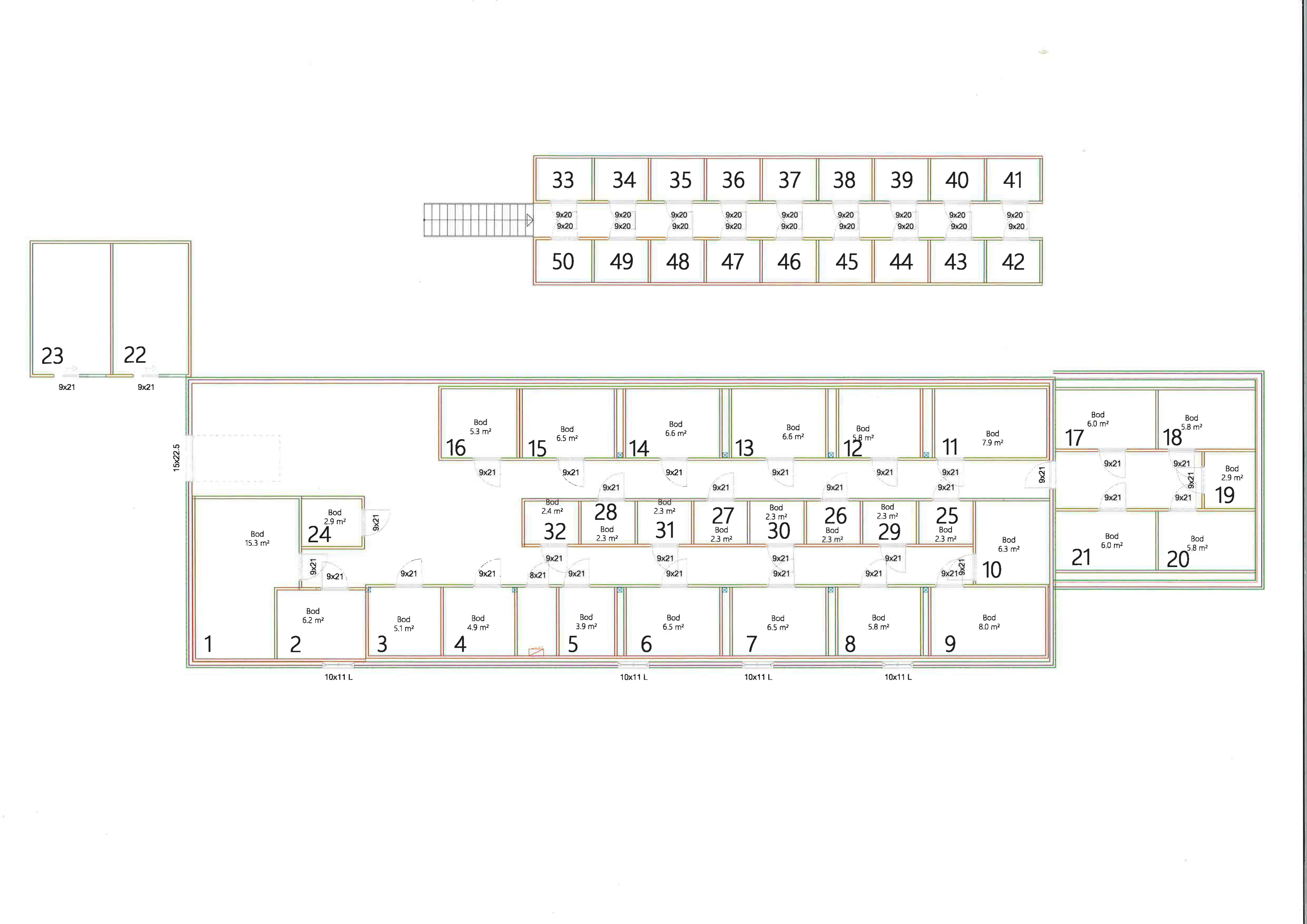 | 50 | 2,4 m2 | 300 pr. mnd | 1,35m dyp, 1,80m bred med skråtak fra 1,0 - 2,0m | Utleid på ubestemt tid